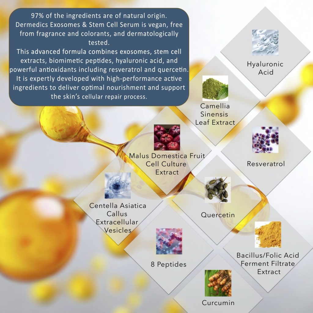 This advanced serum brings together exosomes, stem cell extracts, biomimetic peptides, hyaluronic acid, and antioxidants such as resveratrol and quercetin. It helps to support the appearance of smoother, fresher, and more revitalized skin, aiming to promote a radiant and youthful-looking complexion.